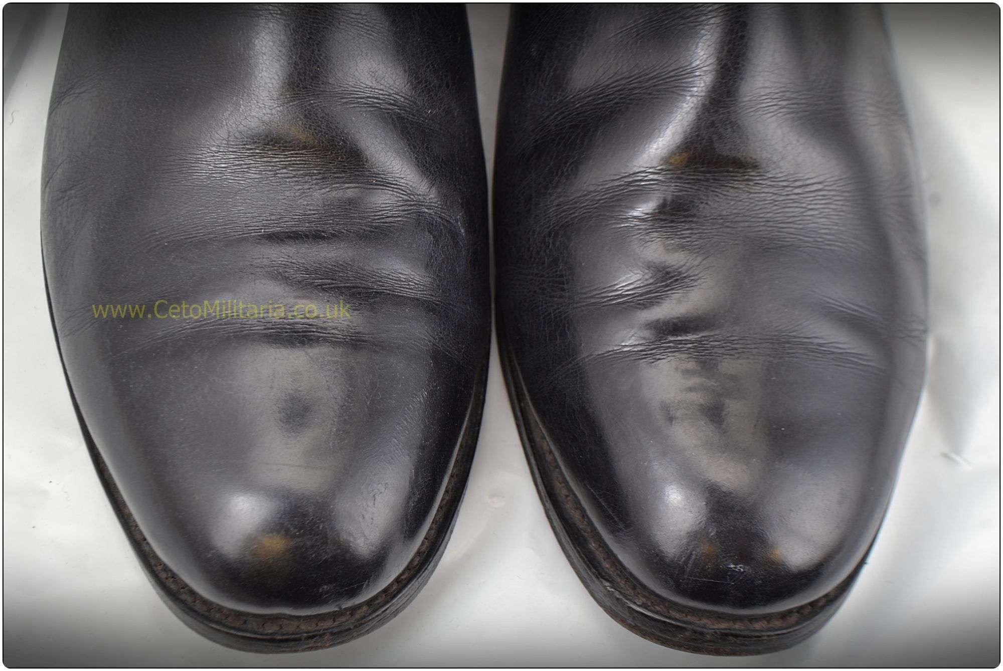 Wellingtons/Mess/Parade Boots Please note that second hand boots are sold with no guarantee as to their functionality. Condition is described as accurately as possible, but where they have been previously used it is not possible to know what wear or stress they have previously been placed under. Date: Undated Size: Size 8.5 Condition: Light creasing but appear strong and damage-free with plenty of life. SKU: 22865.1 Date: Undated Size: Label unclear. Approx size 8 Condition: Signs of use, minor creasing/scuffing and would benefit from a polish but appear sound, strong and useable. SKU: 22834.11 SOLD SKU: BootsWellies |