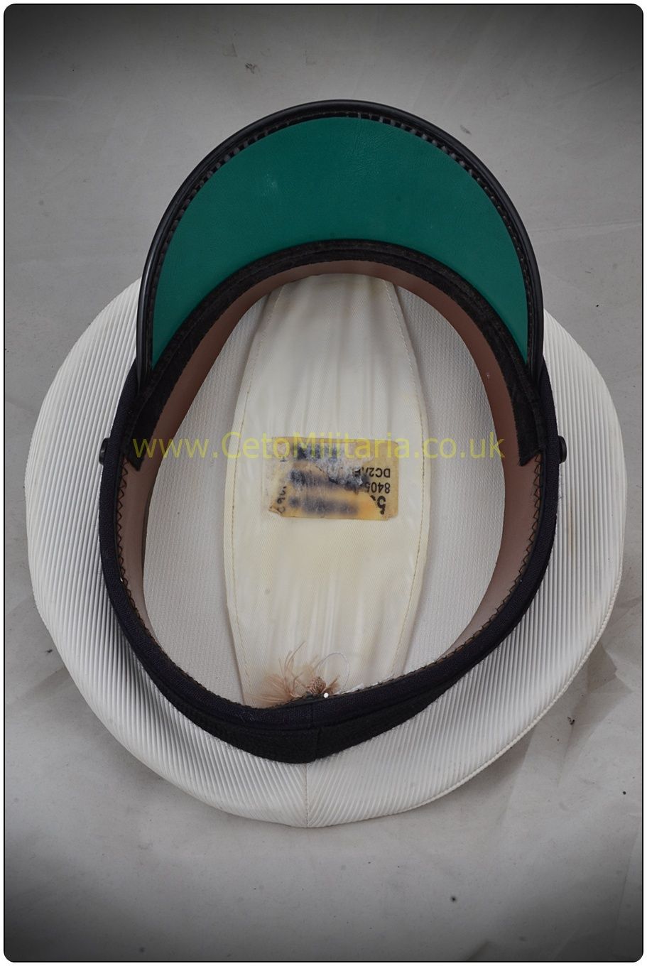 Royal Navy Officer Cap Caps are used. Expect light marks, but anything worse will be mentioned in details below. Size: Measures 53cm Condition: G2 - clean, no external damage but misshappen and the internal leather sweatband is half unstitched. Size: Measures 53cm Condition: G2 - Misshappen. Buttons broken. Inner sweatband removwed. Edge of peak is cracked/falling off but clean and quite wearable. Ideal for fancy dress or as a "working cap" for reenactment/events etc Size: Measures 56/57cm Condition: G1 - Very good. Some very minor marks/spots on crown which should clean out. Otherwise clean & damage-free. Size: Approx 56cm Condition: G1 - Excellent. Minimal wear. Clean & damage free.. Size: Approx 57cm Condition: G2 - Wearable but poor. Off-white/dirty crown. Dull peak. Moth damage to lower edge of headband. SOLD Size: Measures 57cm Condition: G1 - Good. Crown is bright & clean. The peak has lost some shine (see photo). Otherwise damage-free. Size: Approx 58cm Condition: G1/2 - Generally good condition. There are some marks on the crown, most of which should clean out with a little effort. Note that the headband has been split/unstitiched at the rear seam to make the cap larger. This is mostly covered from sight by the capband. Size: Measures 58/59cm Condition: G1 - Generally very good athough there is a single hole (approx 2mm, see photo) at rear of crown. No other damage. Clean. Size: Approx 59cm Condition: G1 - Very good. Only light wear. Some very minor marks on crown but otherwise clean & damage free. Size: Measures 61/62cm Condition: G1 - Excellent. Clean & damage-free. Size: Measures 59cm Condition: G1 - Good. Damage-free. Extremely minor wear marks on crown. SKU: RNCapOff |